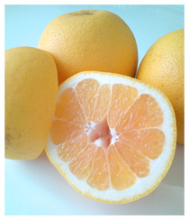 グレープフルーツの果肉1粒1粒は、まとめられて、薄い皮で包まれ支えられて、1つの房になっています。